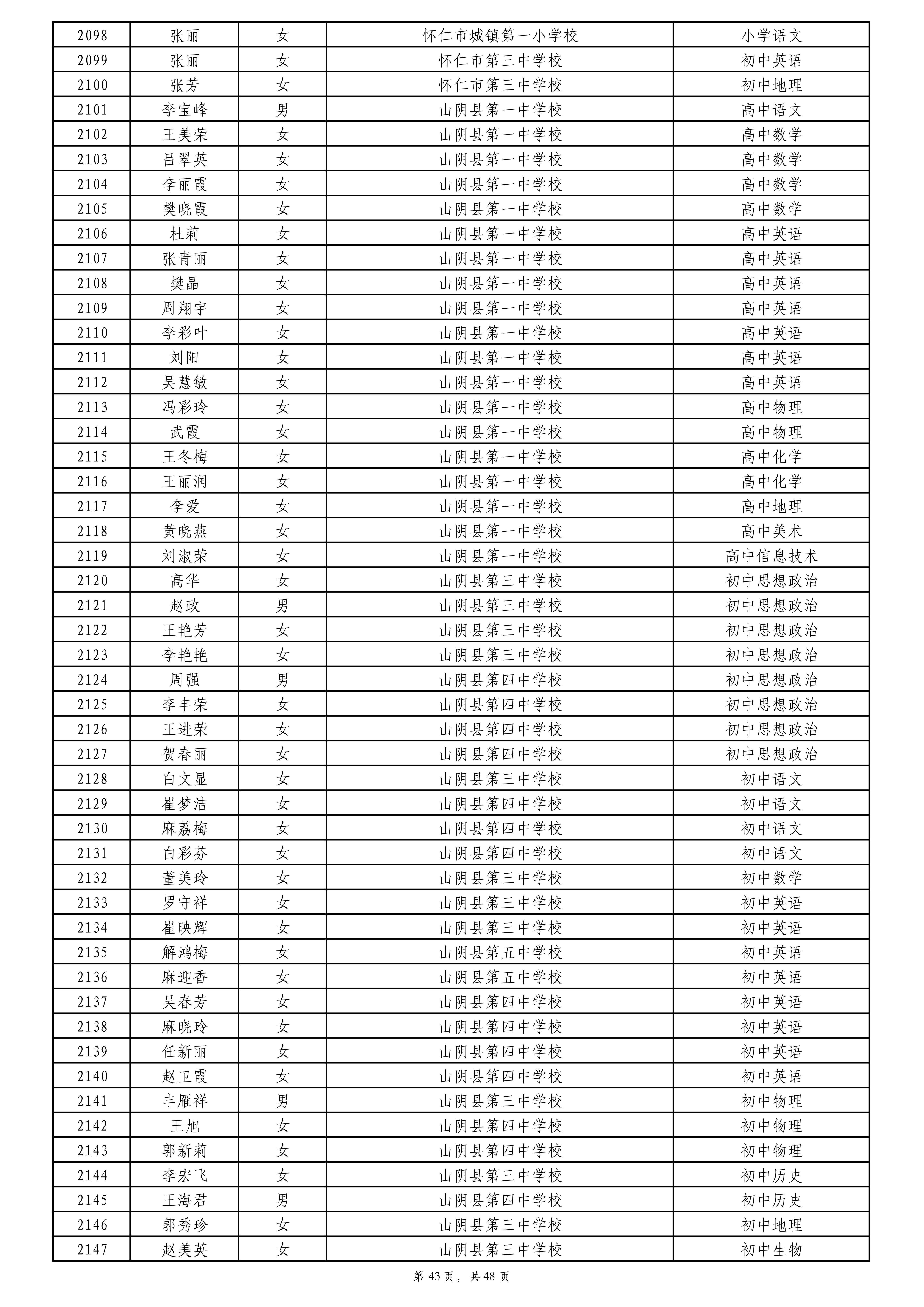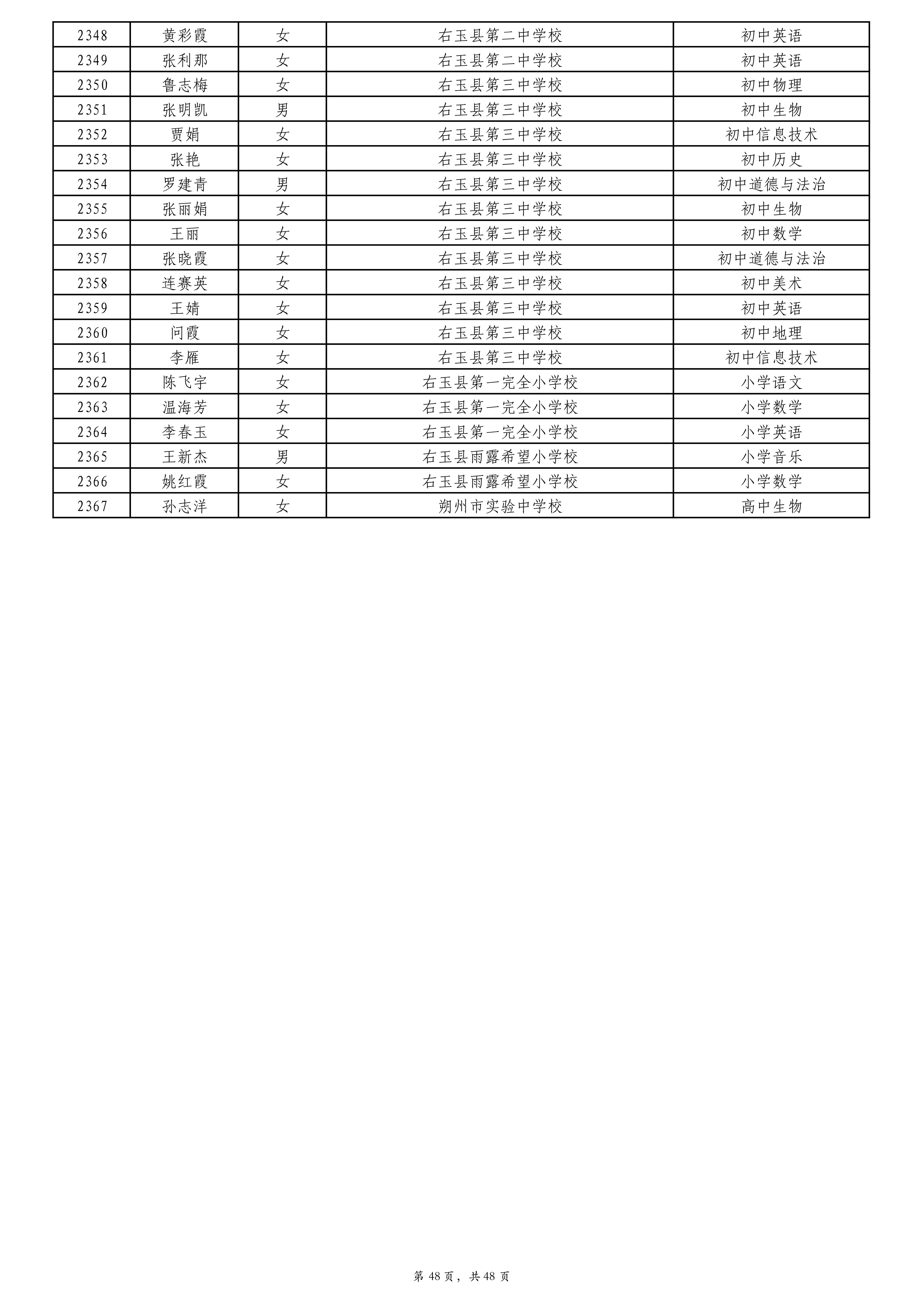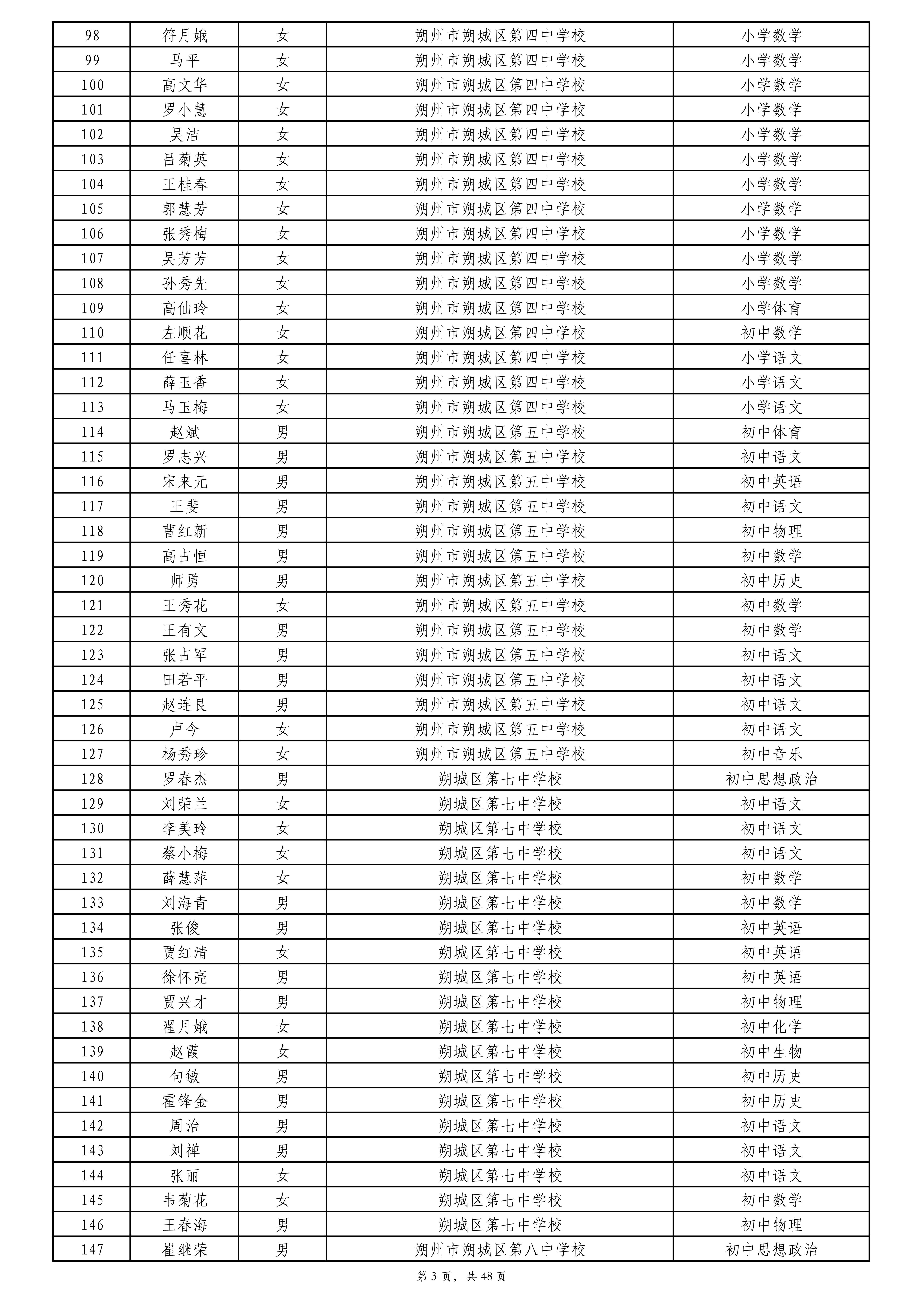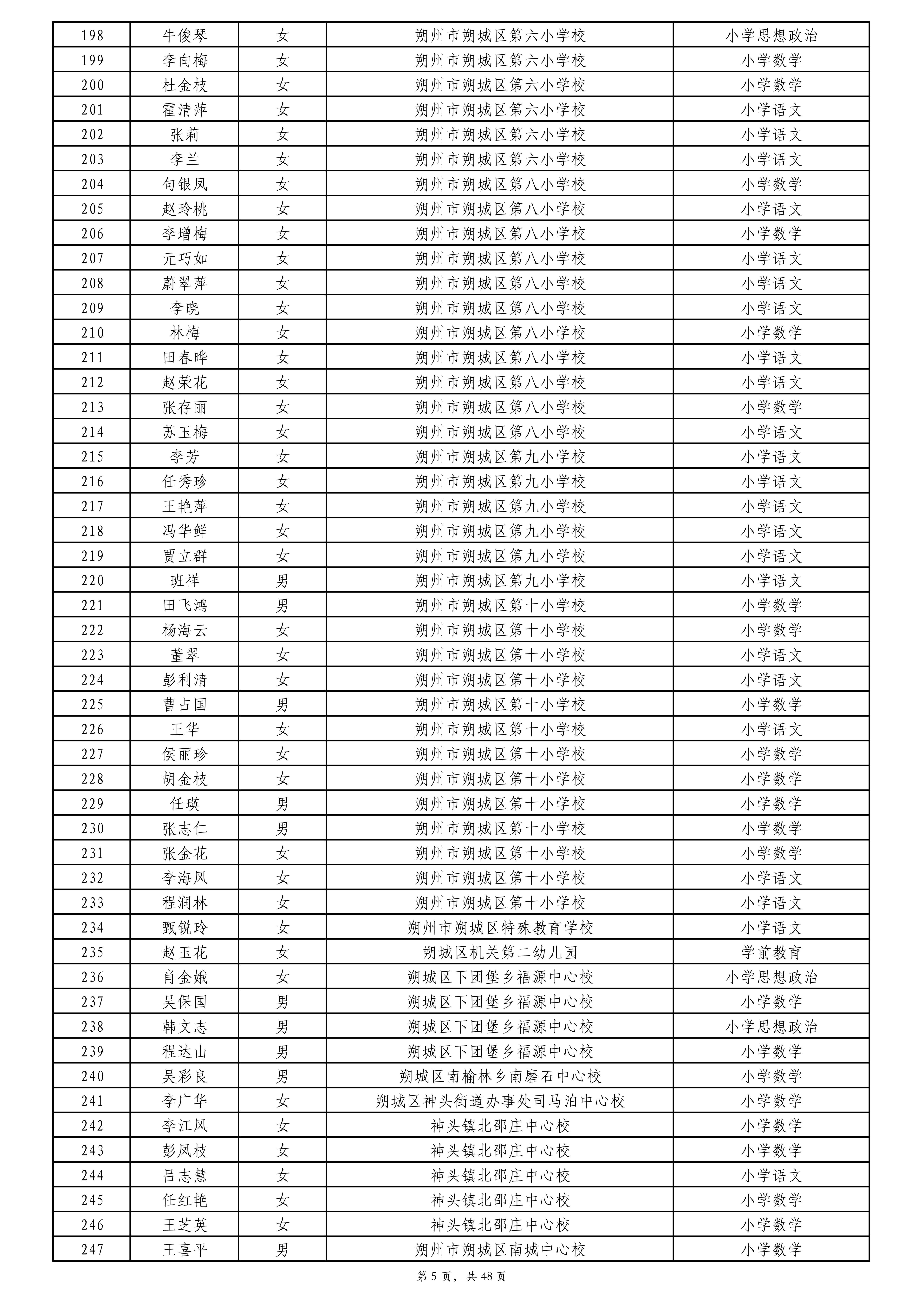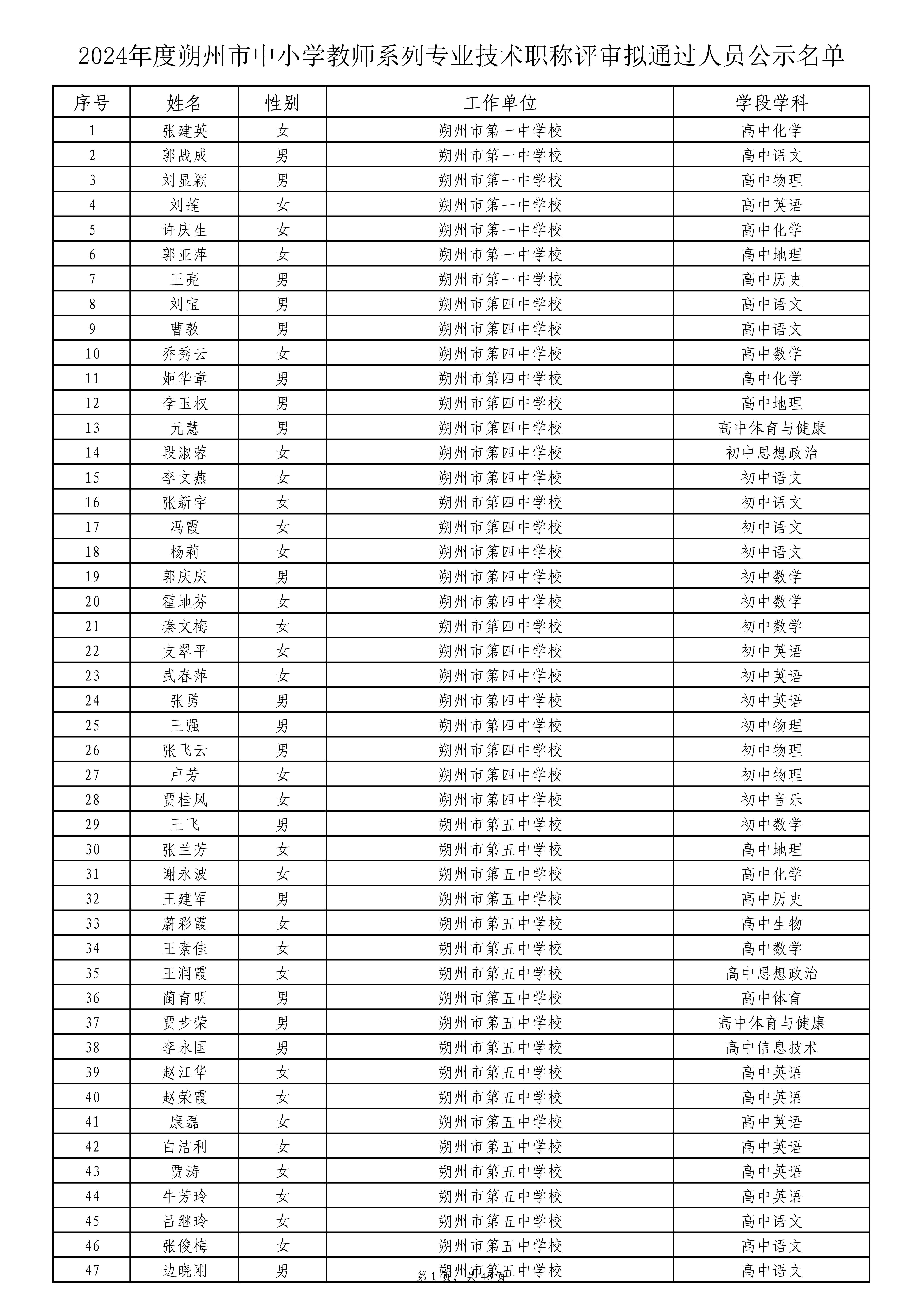 附件:2024年度朔州市中小学教师系列专业技术职称评审拟通过人员名单