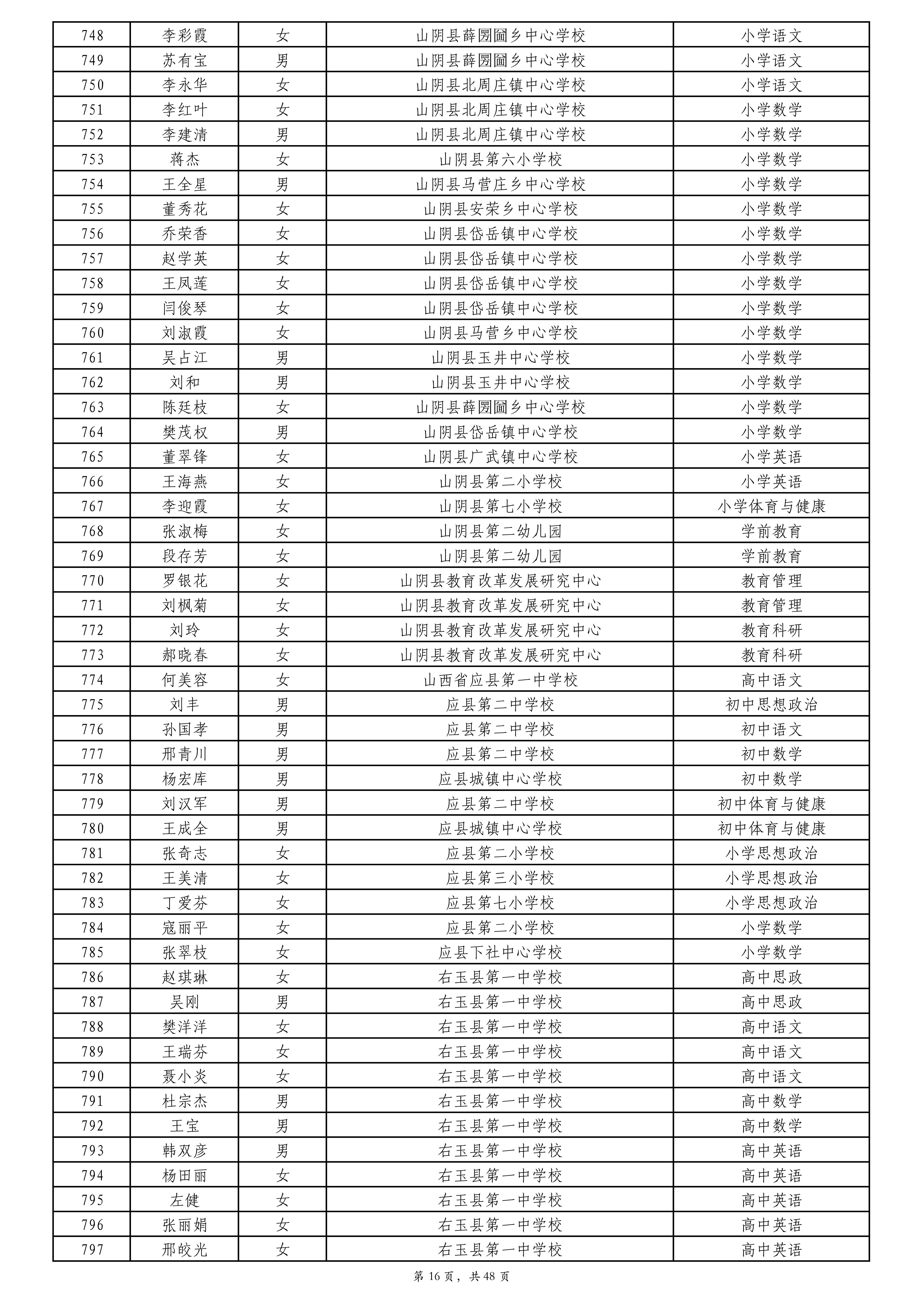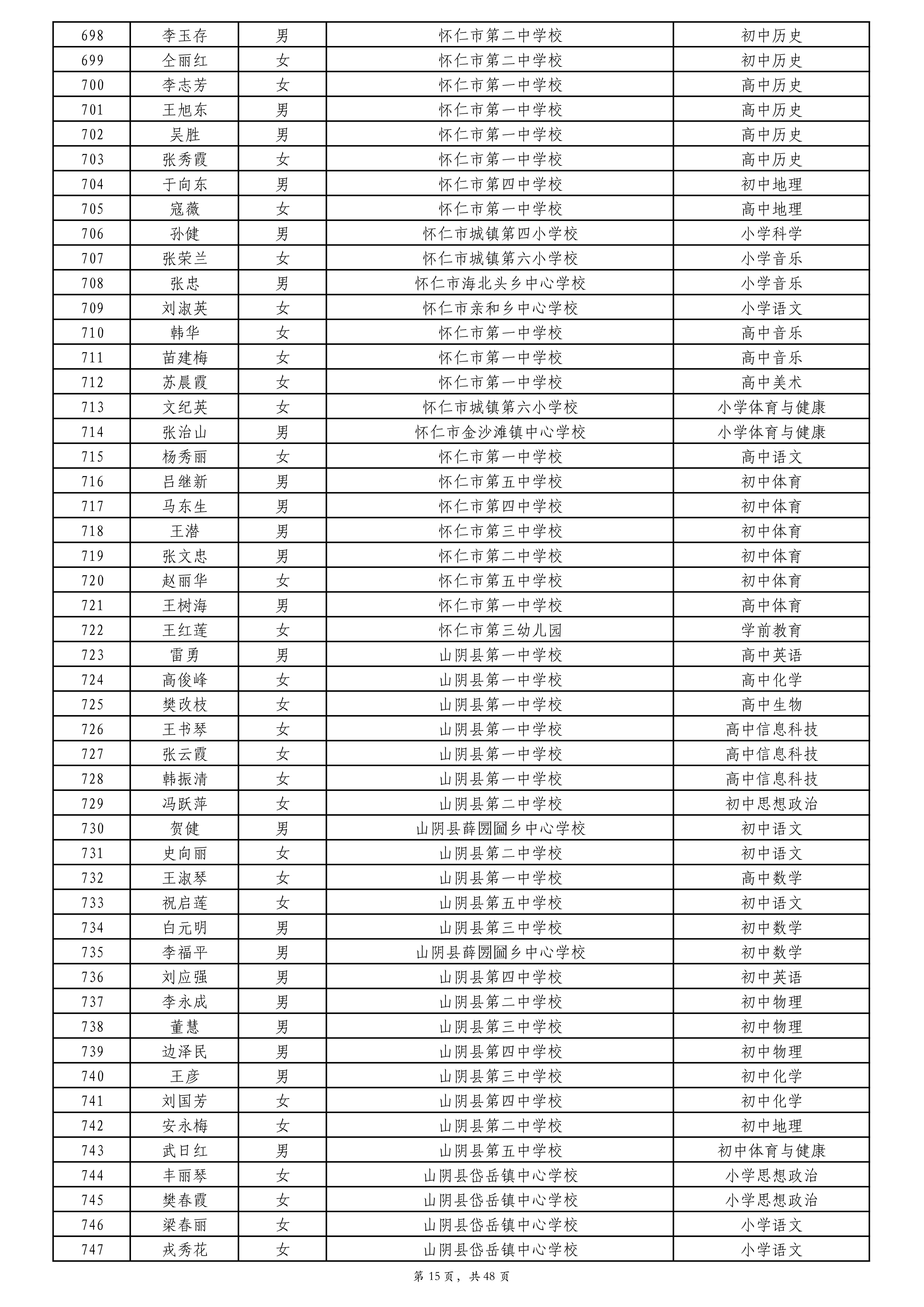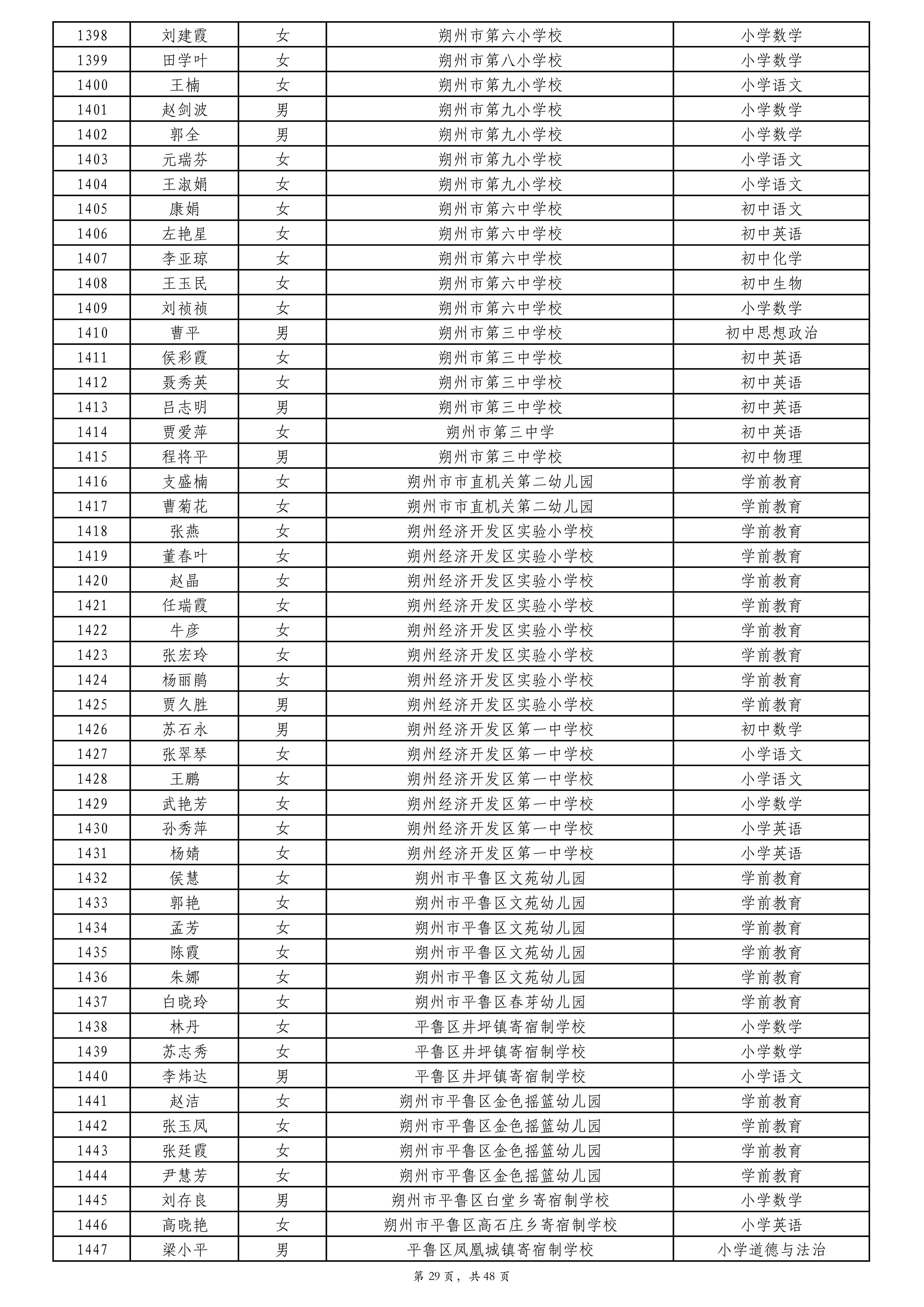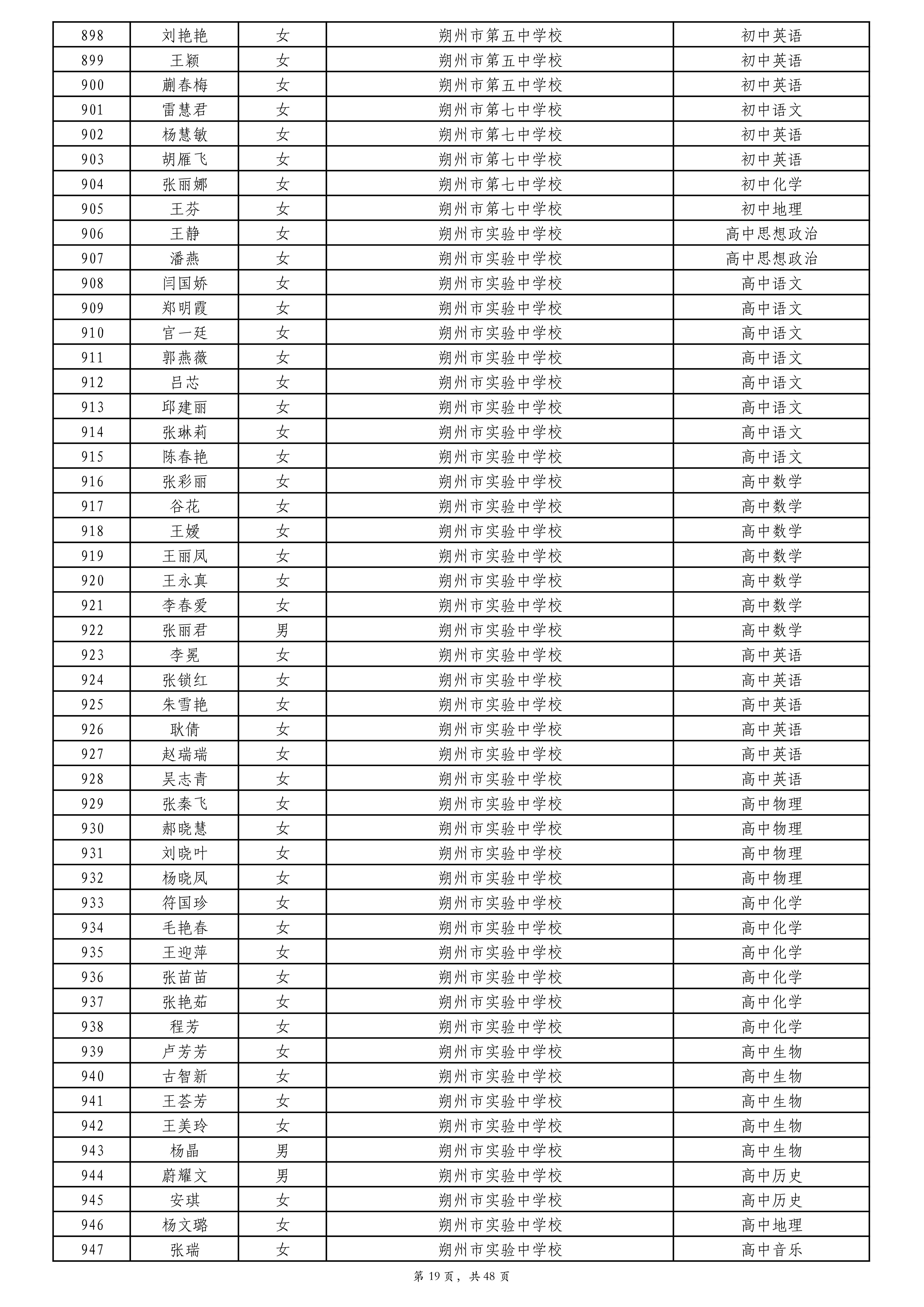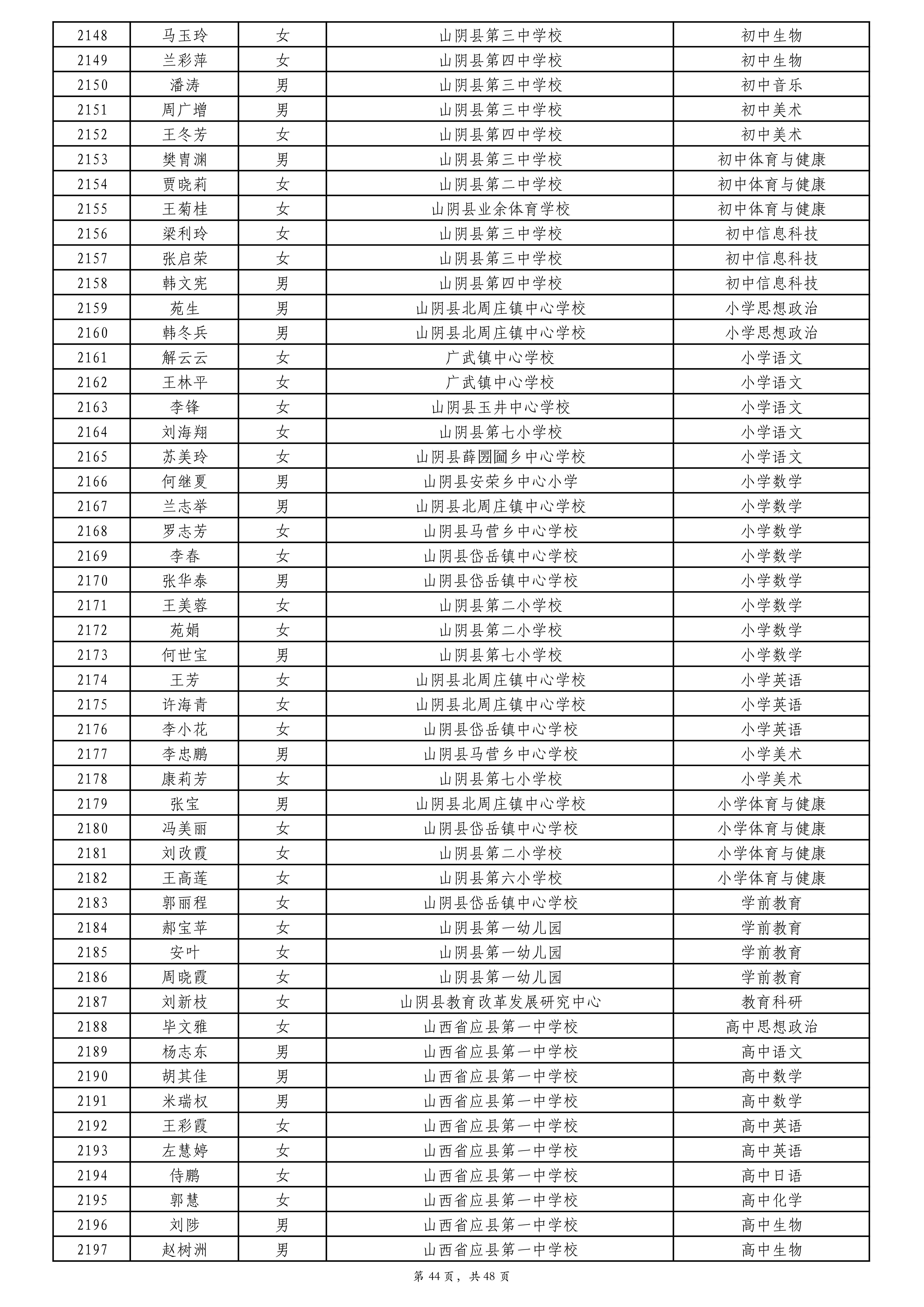 附件:2024年度朔州市中小学教师系列专业技术职称评审拟通过人员名单