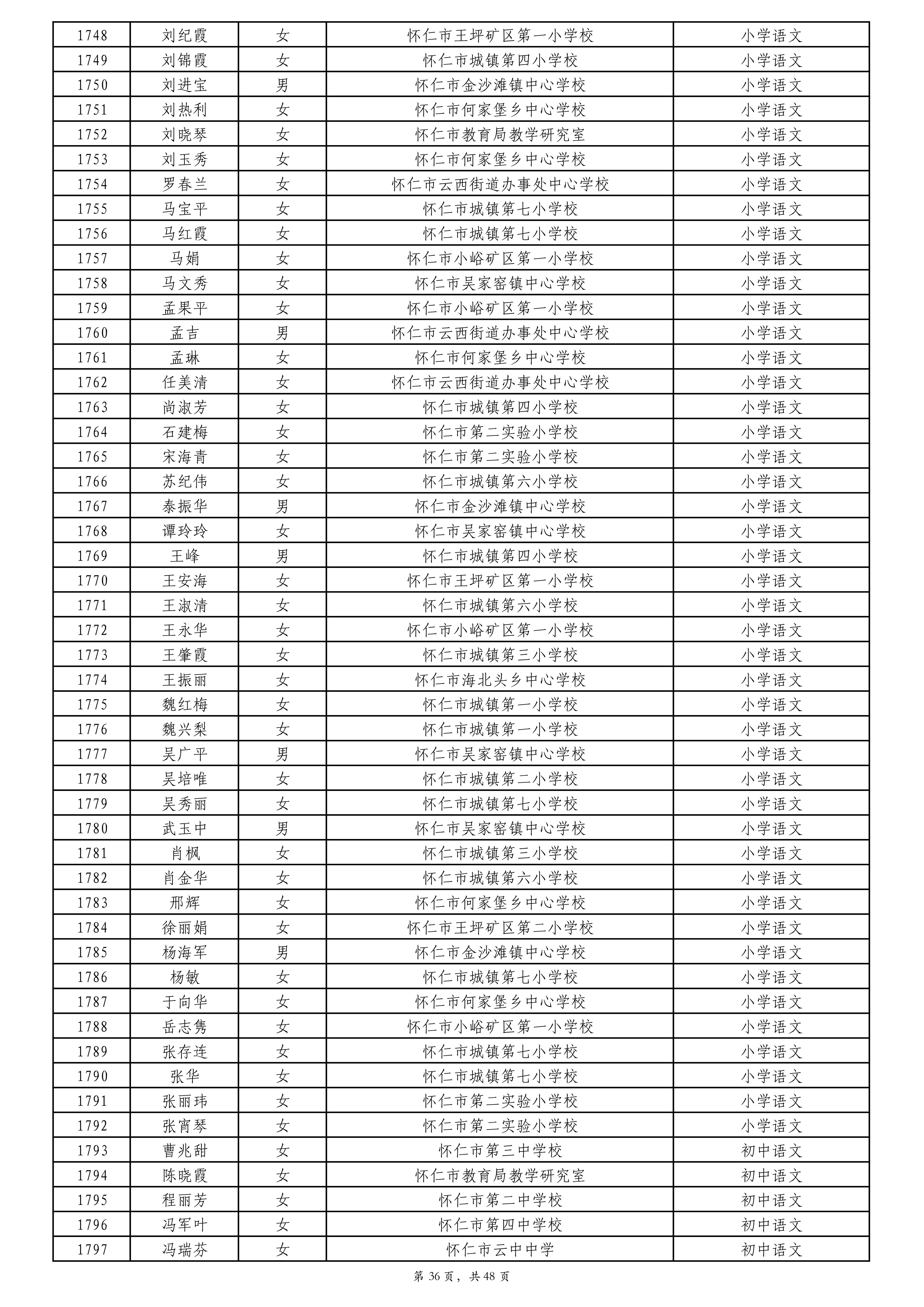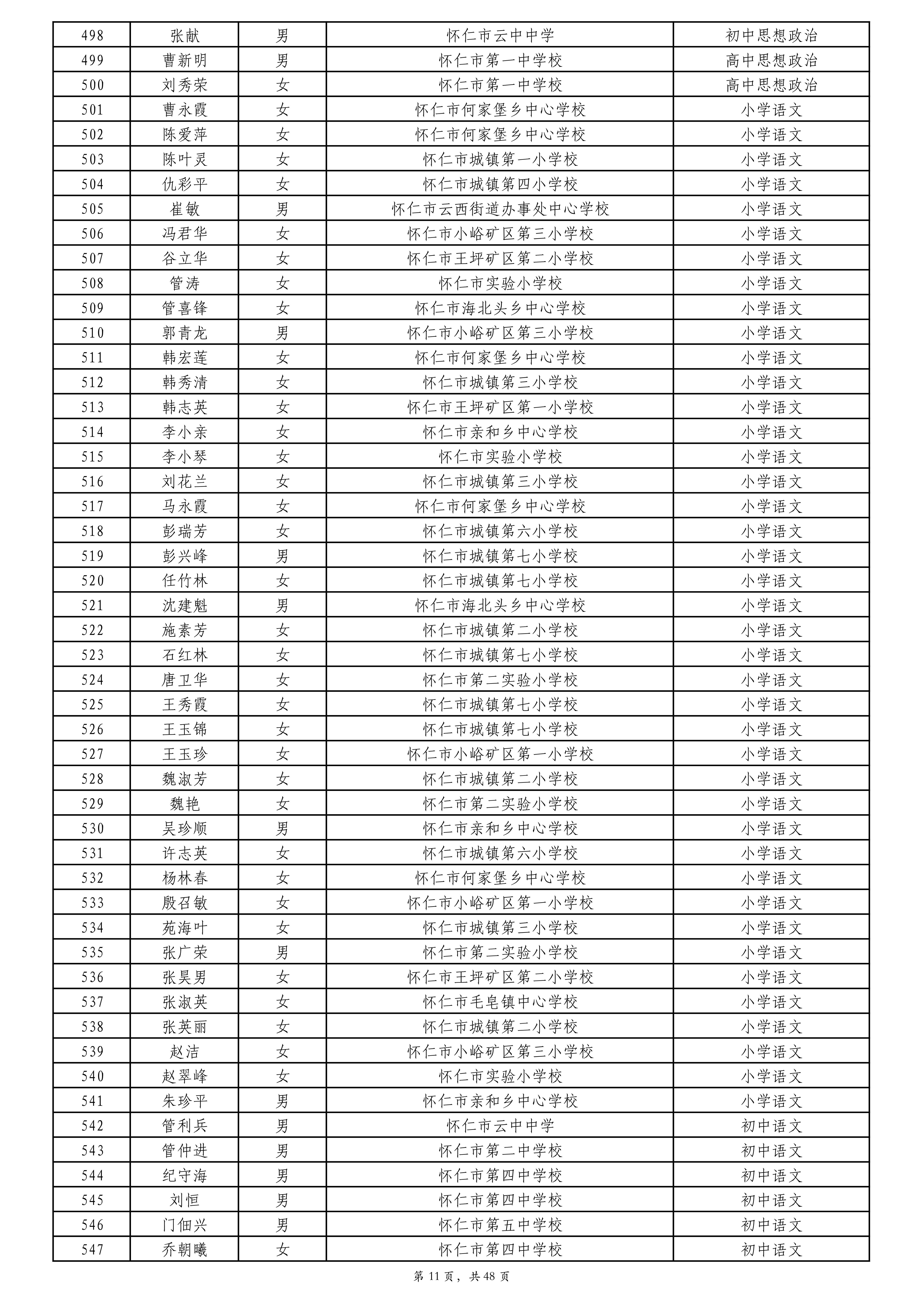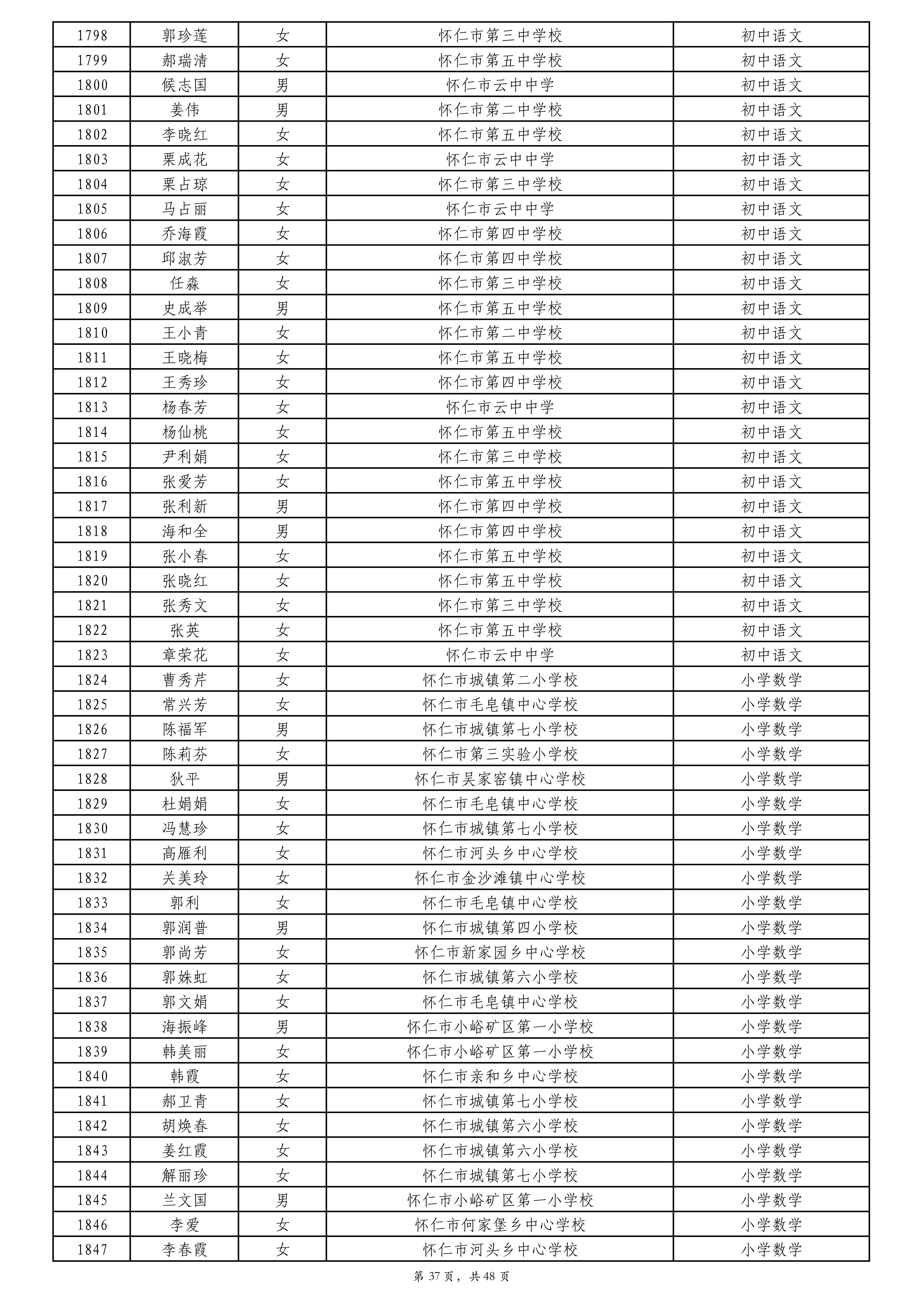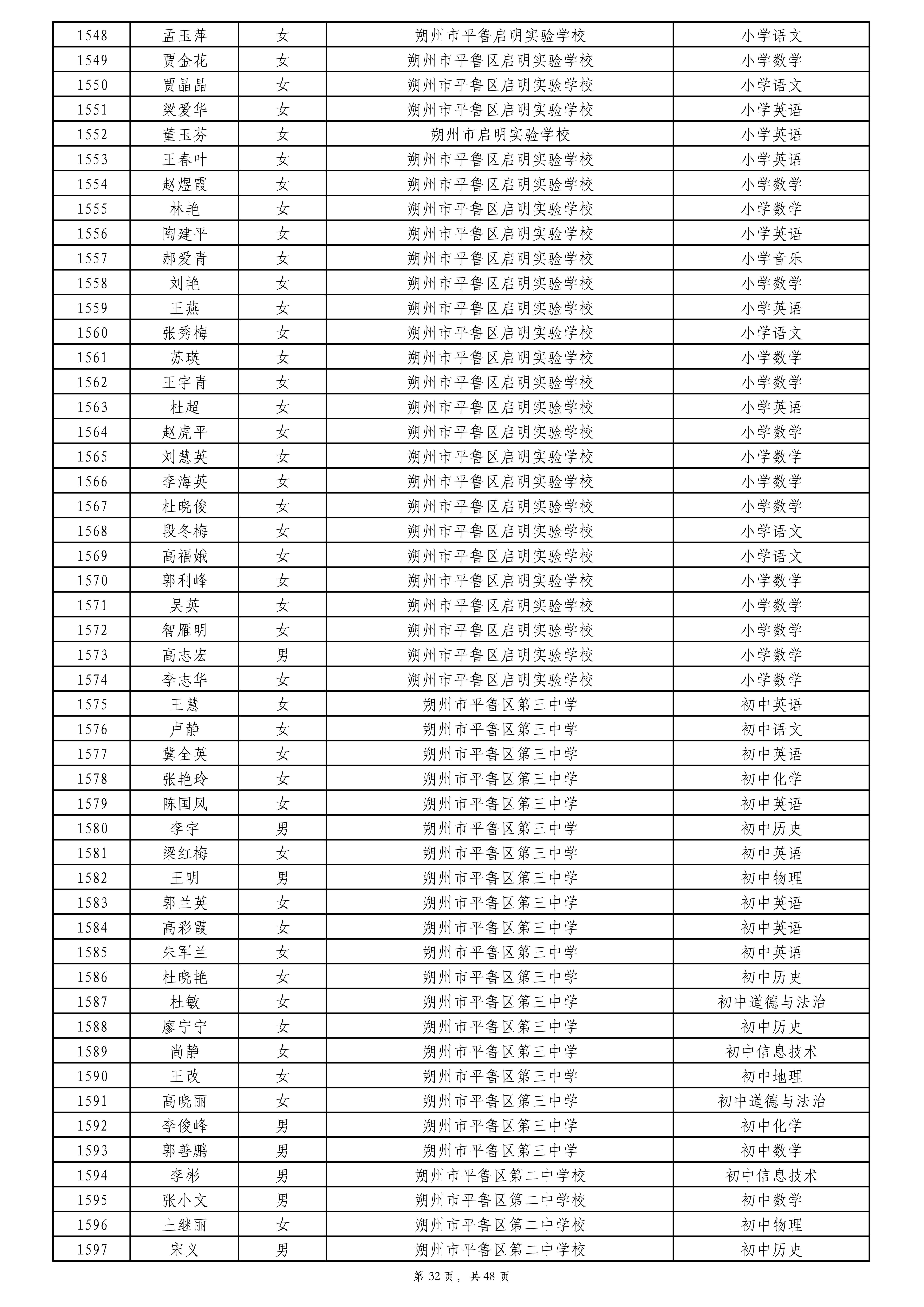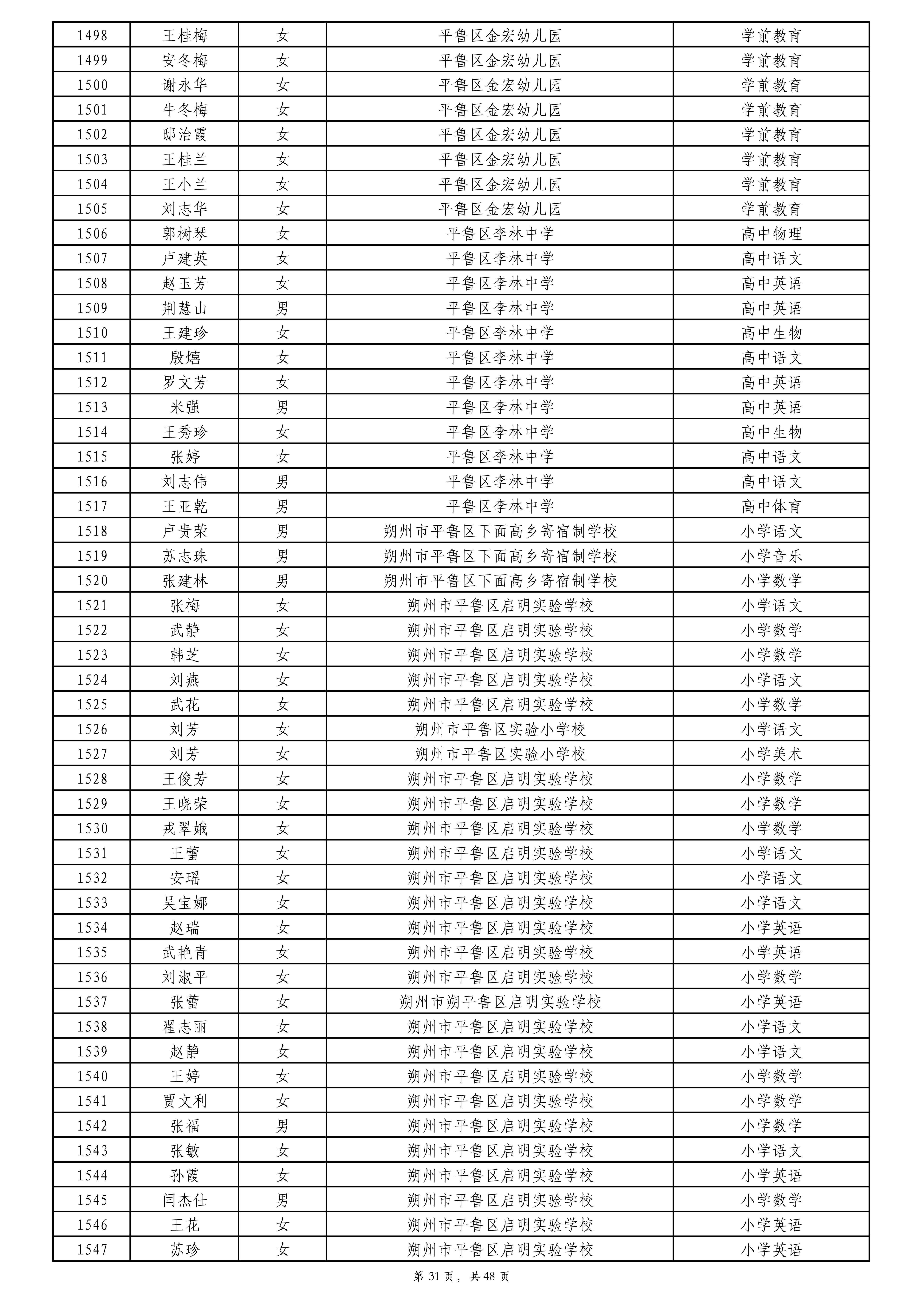 附件:2024年度朔州市中小学教师系列专业技术职称评审拟通过人员名单