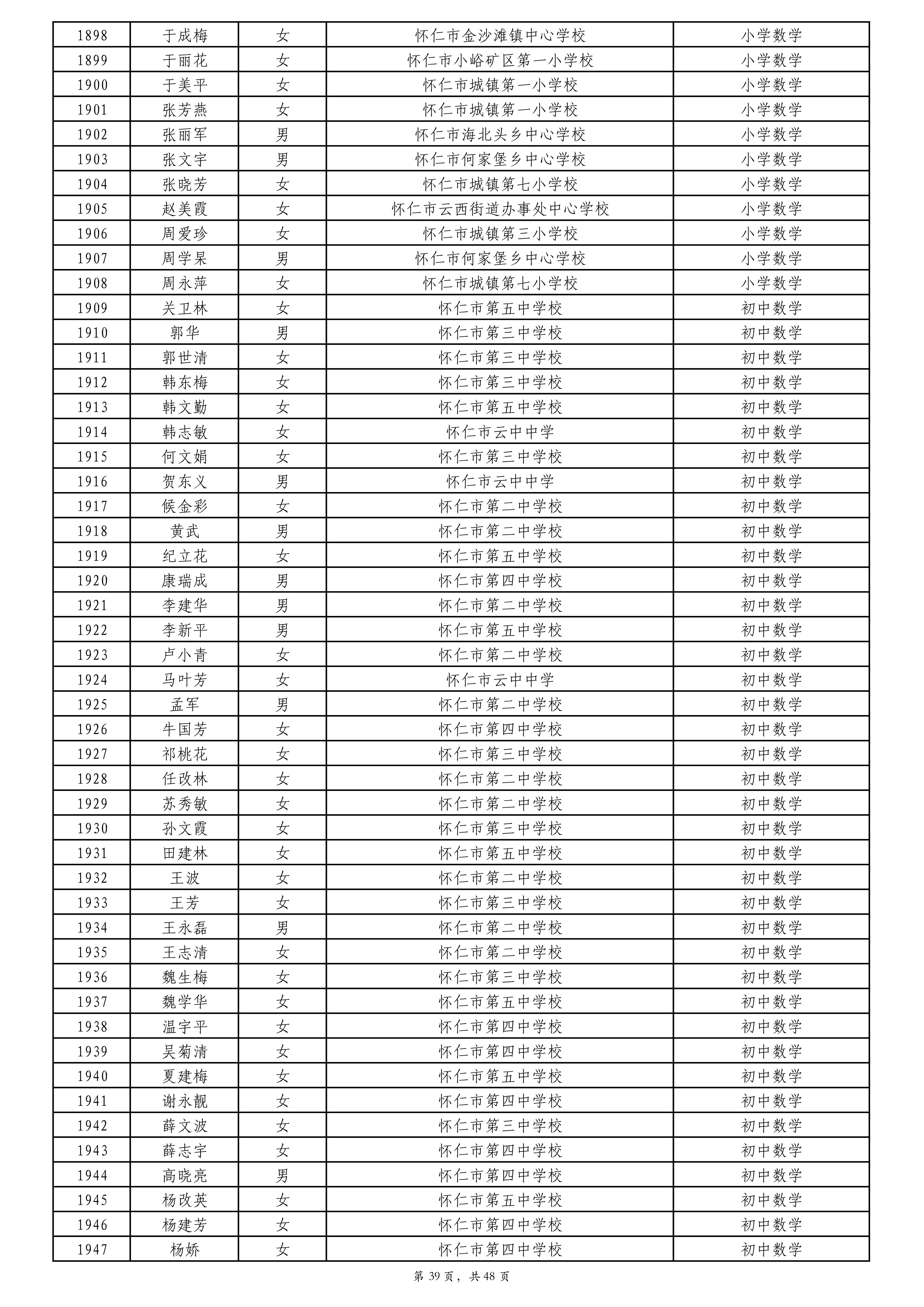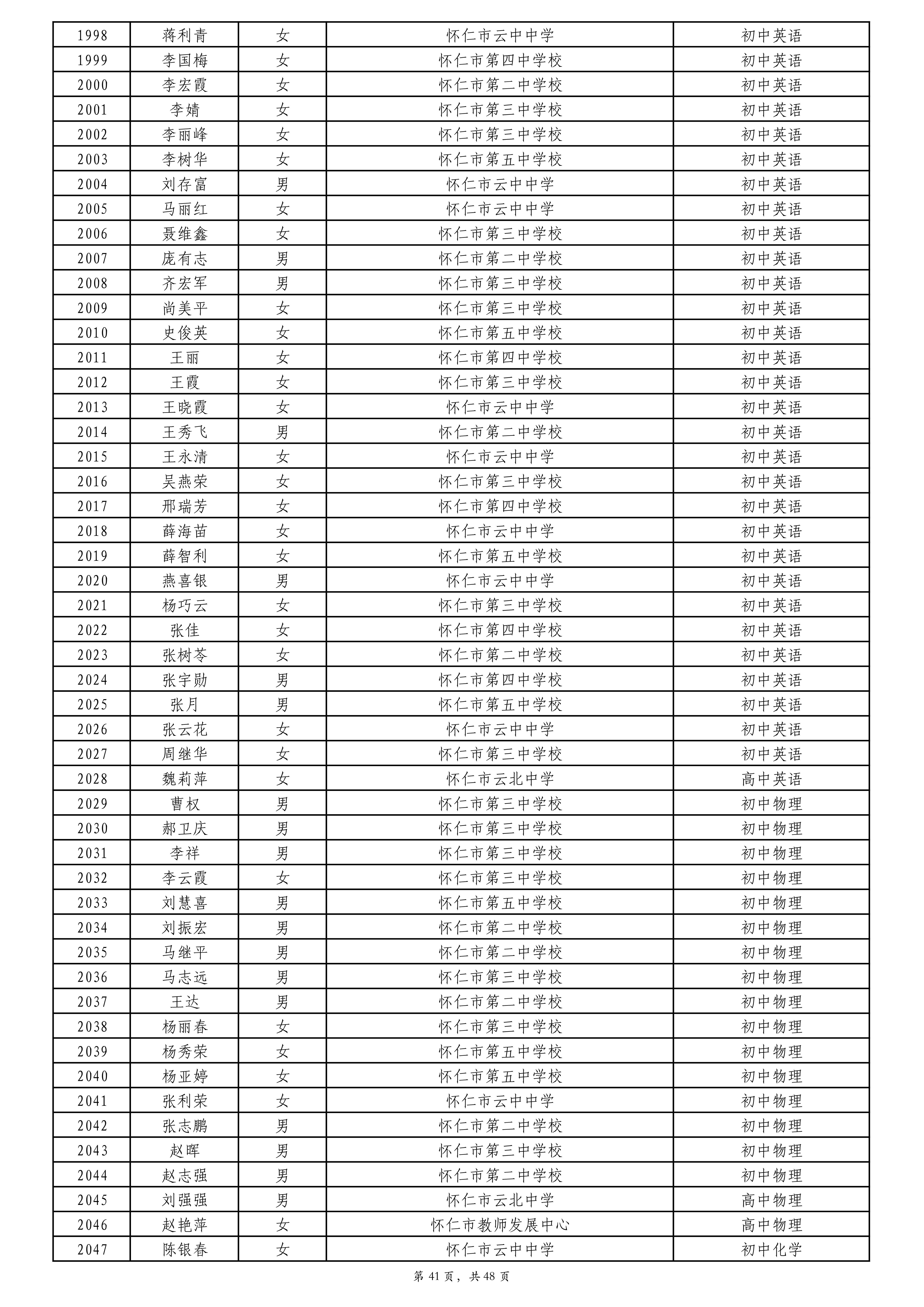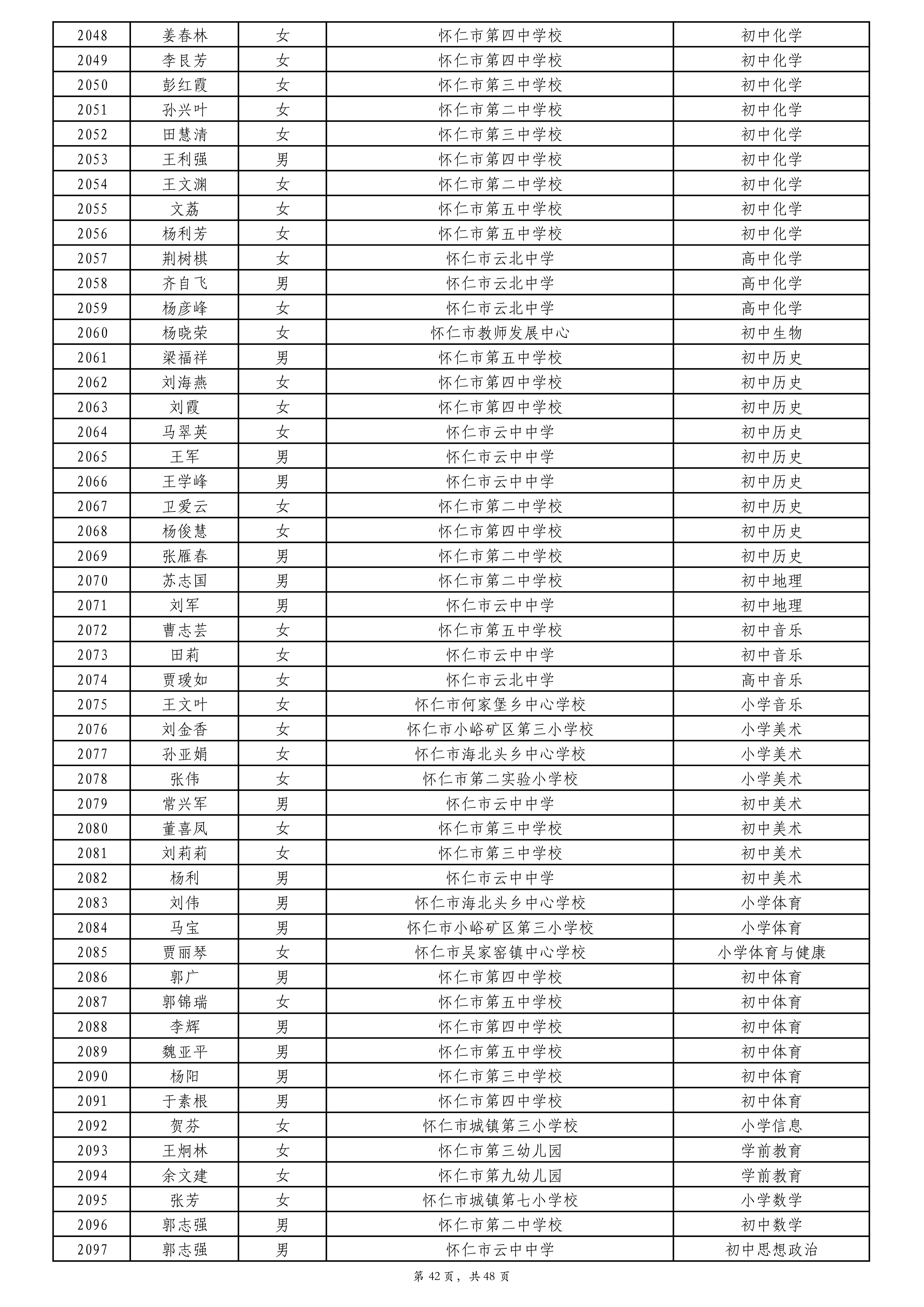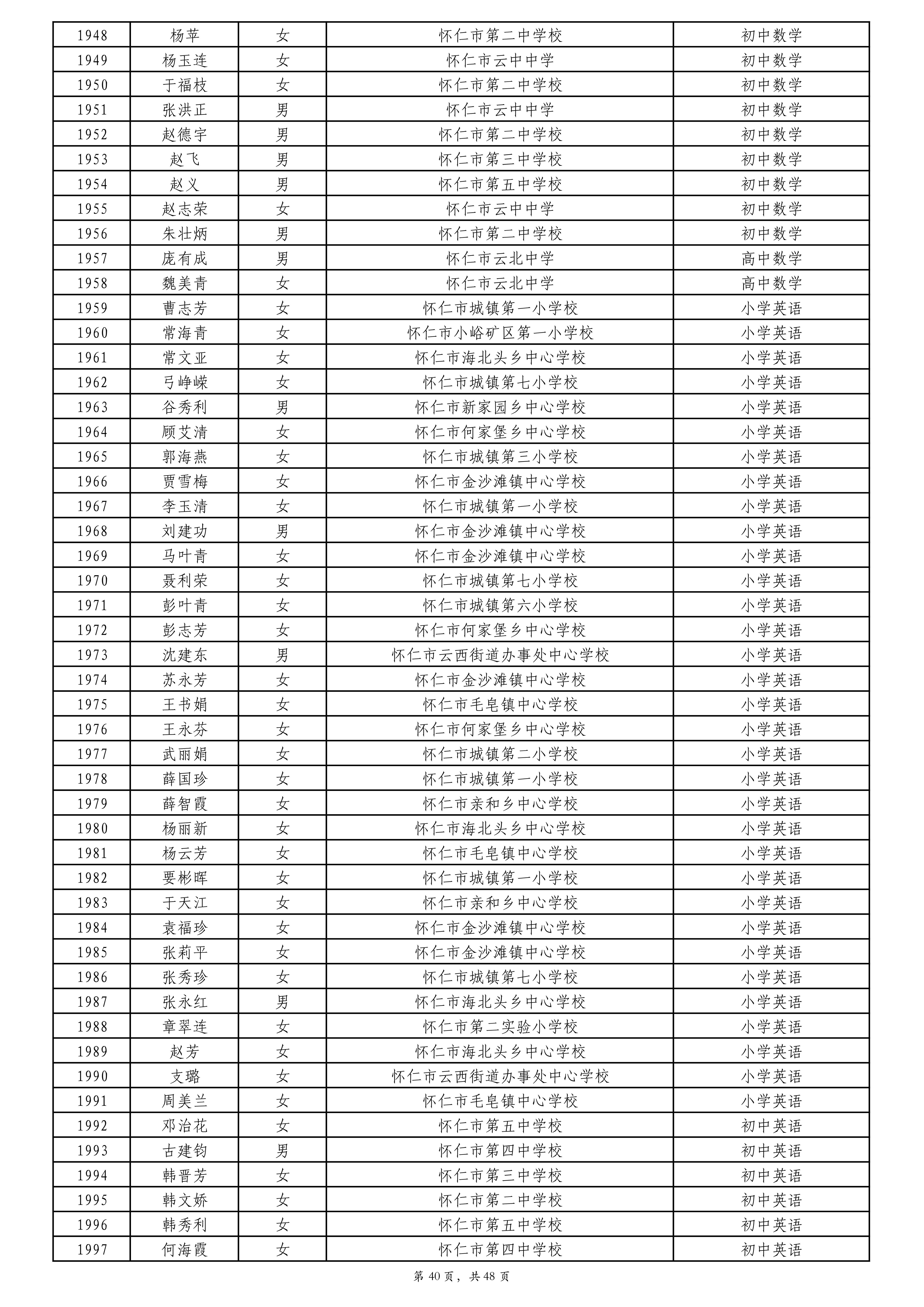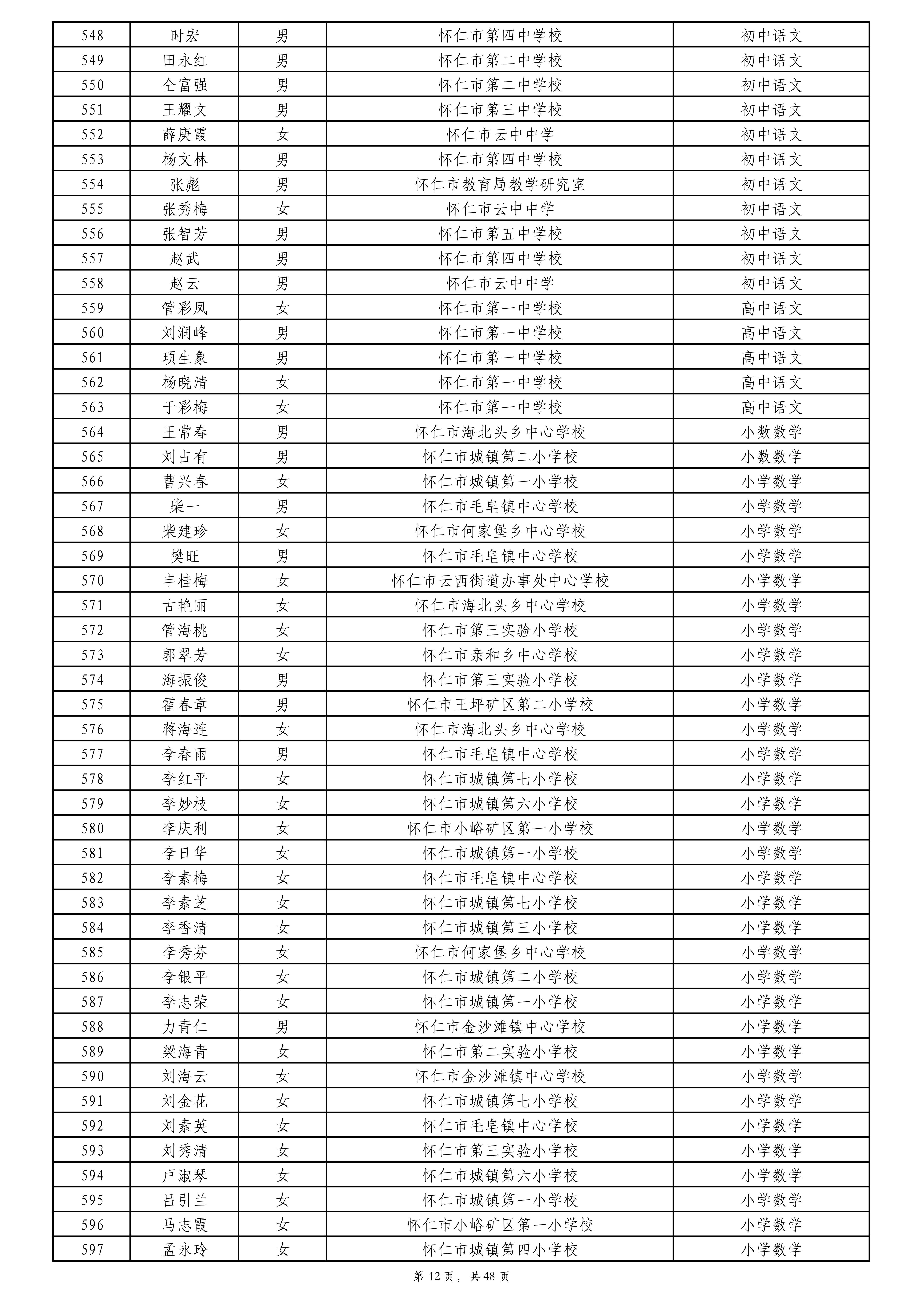 附件:2024年度朔州市中小学教师系列专业技术职称评审拟通过人员名单
