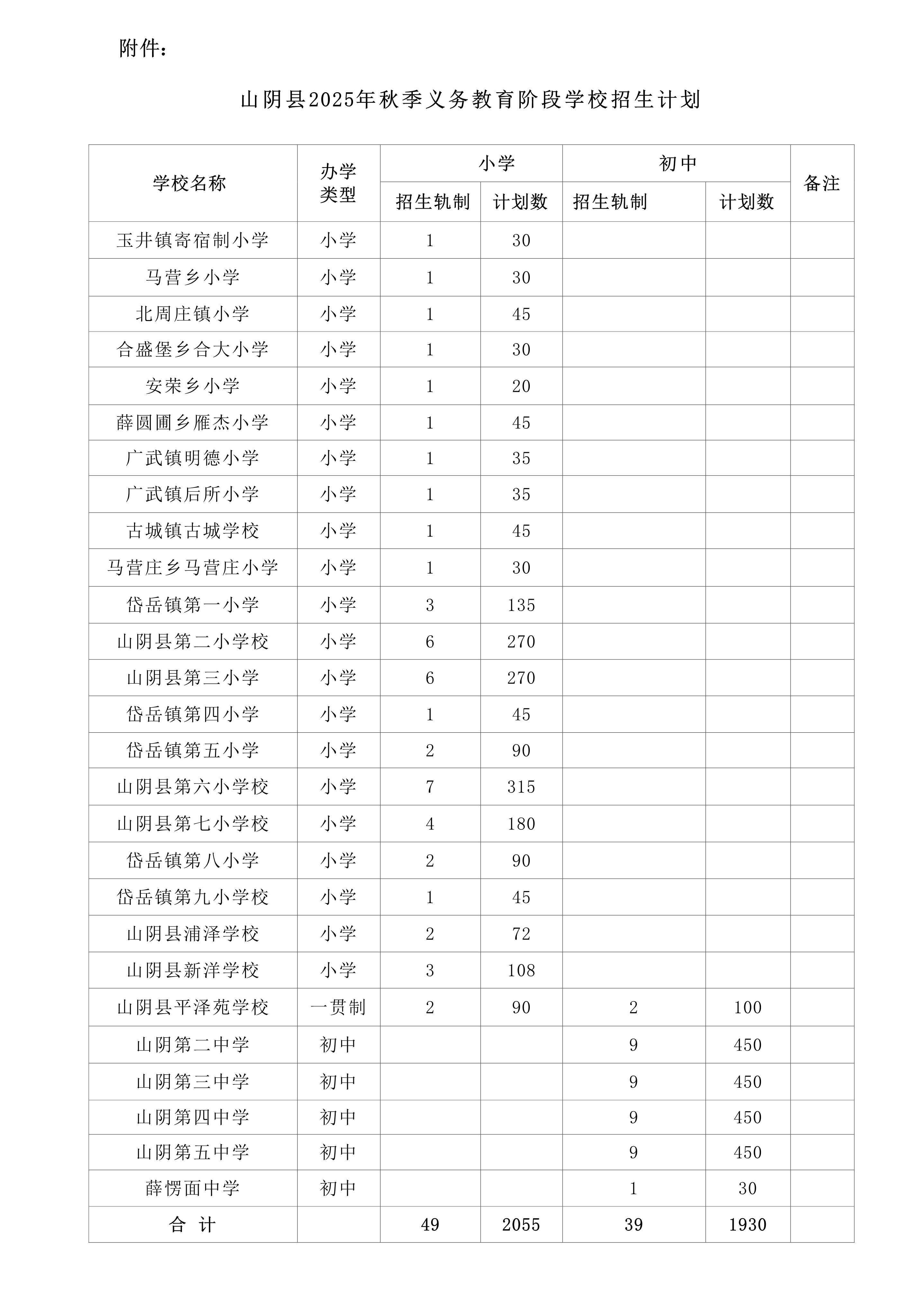 山阴县2025年秋季学期义务教育阶段学校招生工作方案
