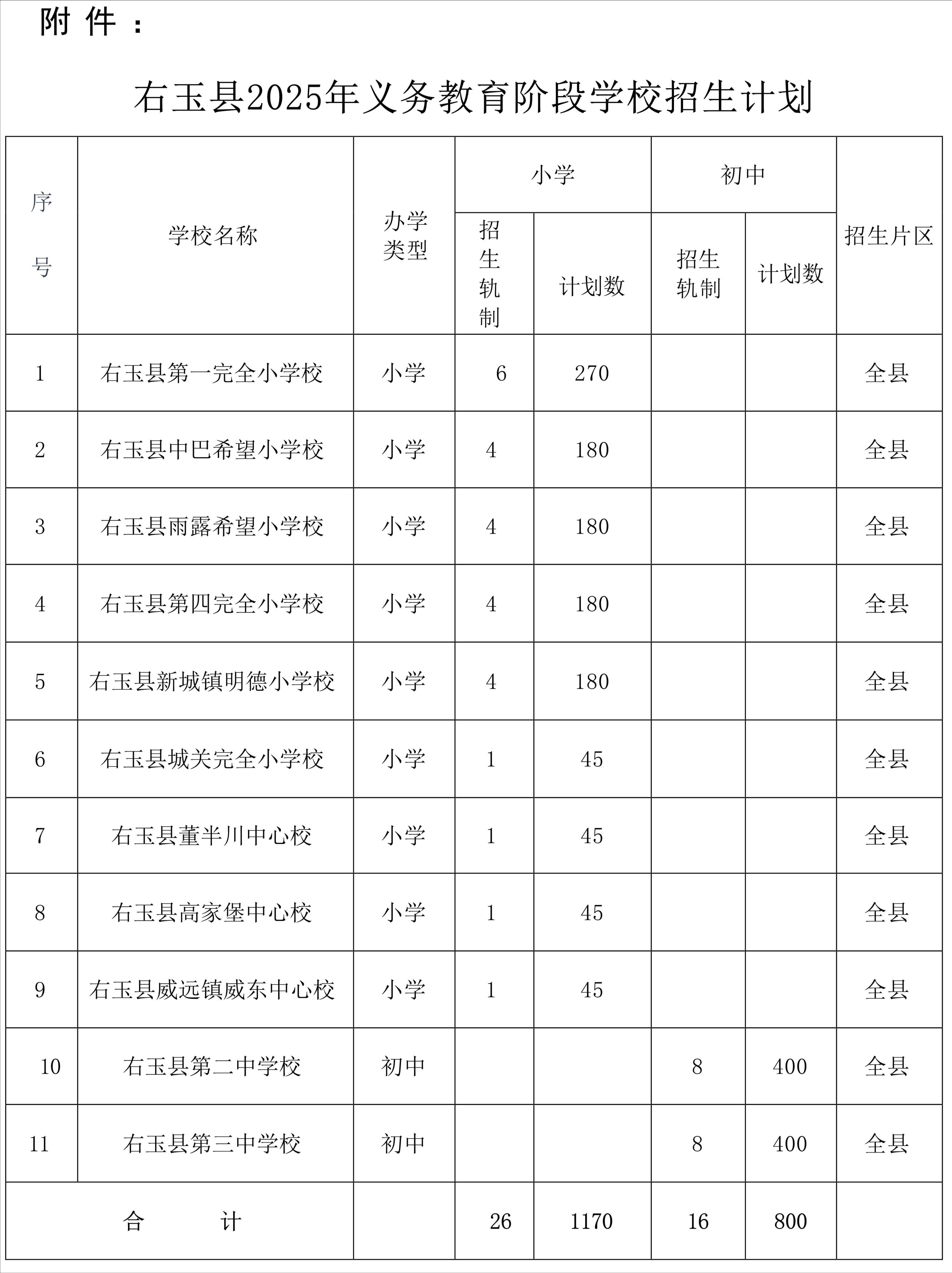 附: 《右玉县2025年义务教育阶段学校招生计划》